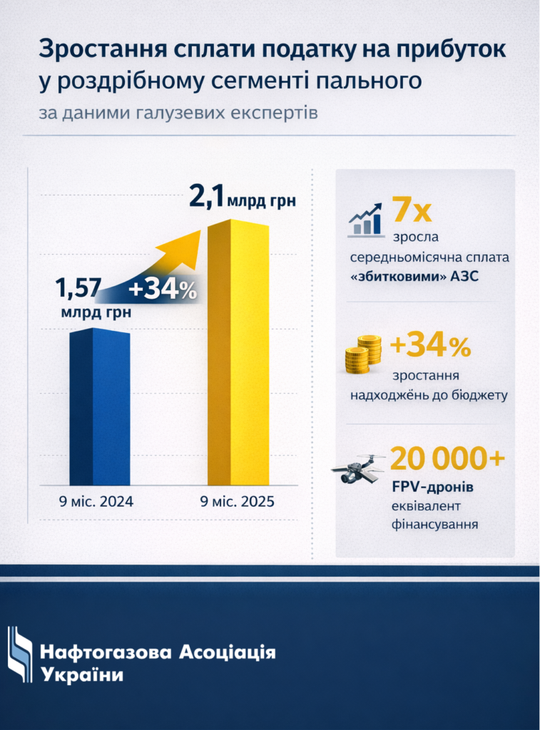 «За даними галузевих експертів, середньомісячна сплата податку на прибуток мережами АЗС, які до 2025 року майже не демонстрували прибутковості, зросла більш ніж у 7 разів.